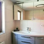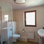 Badrumsfaciliteterna i villan Ferienwohnung Dreams inkluderar också en separat toalett och en dusch. Det finns också torktumlare för gästernas komfort.